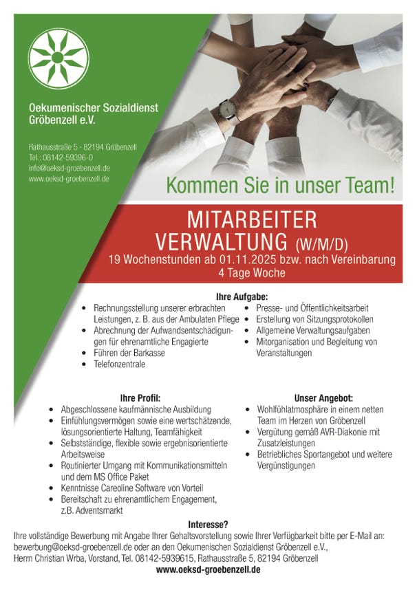 Mitarbeiter (w/m/d) für unsere Verwaltung / Personal in Teilzeit ab 01.11.2025.