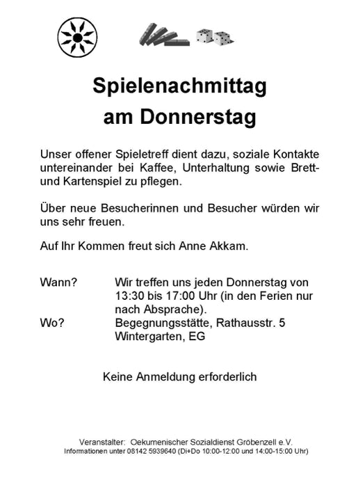 Spielenachmittag am Donnerstag
